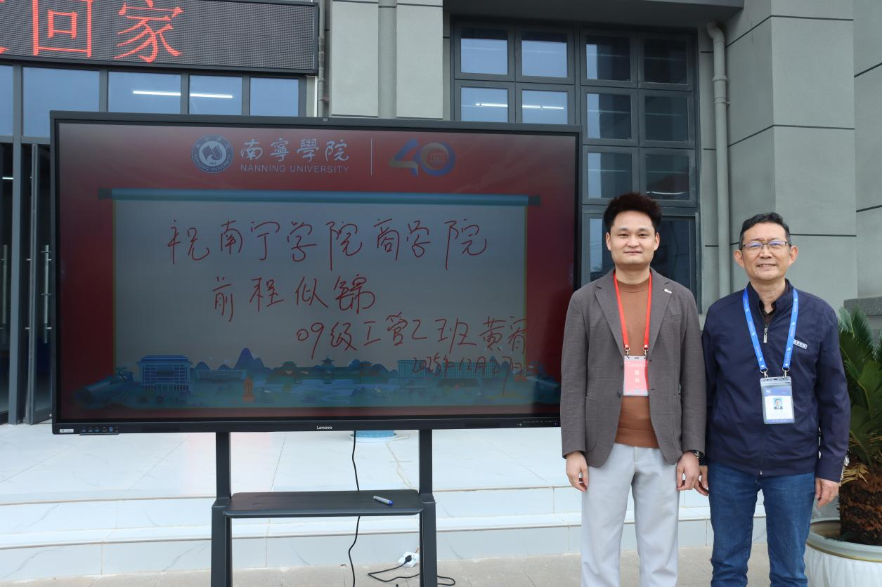 风雨兼程四十载,薪火相传育英才。为凝聚校友力量、共庆母校四十华诞,加强校友与母校、校友与校友间的联系与合作,2025年12月27日,南宁学院40周年校庆期间,商学院精心组织了一系列校友接待与交流活动,取得圆满成功。活动围绕“叙情谊、共谋发展”主题,通过多场景、多层次的交流,搭建起校友与母校、校友之间的情感纽带与发展平台,现场洋溢着重逢的欢欣与共话未来的热情。