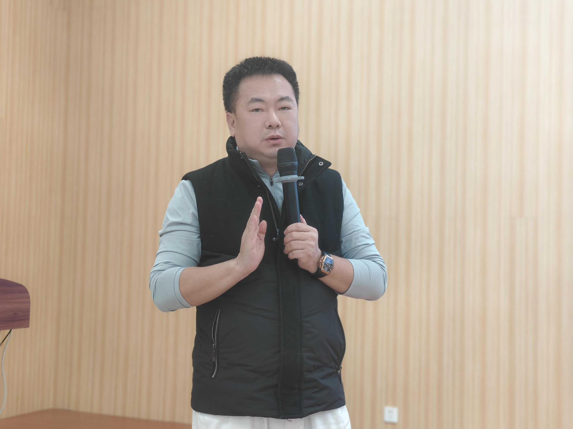 第二位分享嘉宾是拓瑞能源集团创始人兼董事长蒋海平先生。作为南宁学院1999届电气自动化专业校友、校电子协会第一任理事长,蒋先生也是一位跨领域连续创业者,旗下还创立了广西私厨驾到餐饮管理有限公司及线上预订平台“订个厢”小程序。他结合自己从技术专业走向多元创业的历程,分享了关于职业成长与时代机遇的见解。蒋先生勉励在场学子:在规划未来时,首先要认清自身优势,选准方向并持续深耕;既要保持专注与坚持,更要将个人发展融入国家前进的大势,顺应国运、把握机遇。他鼓励大家保持开阔视野,勇于在实践中探索属于自己的发展路径。